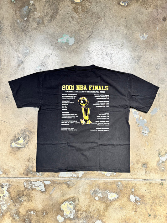 Popcxrn "The 2000 NBA Finals Los Angeles Lakers VS Philadelphia 76er's Stats" T Shirt Washed Black
