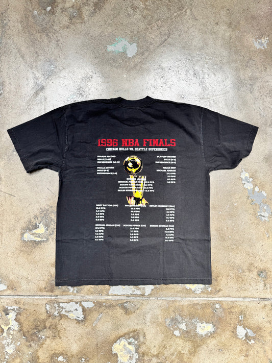Popcxrn "The 1996 NBA Finals Chicago Bull VS Seattle Super Sonics Stats" T Shirt Washed Black