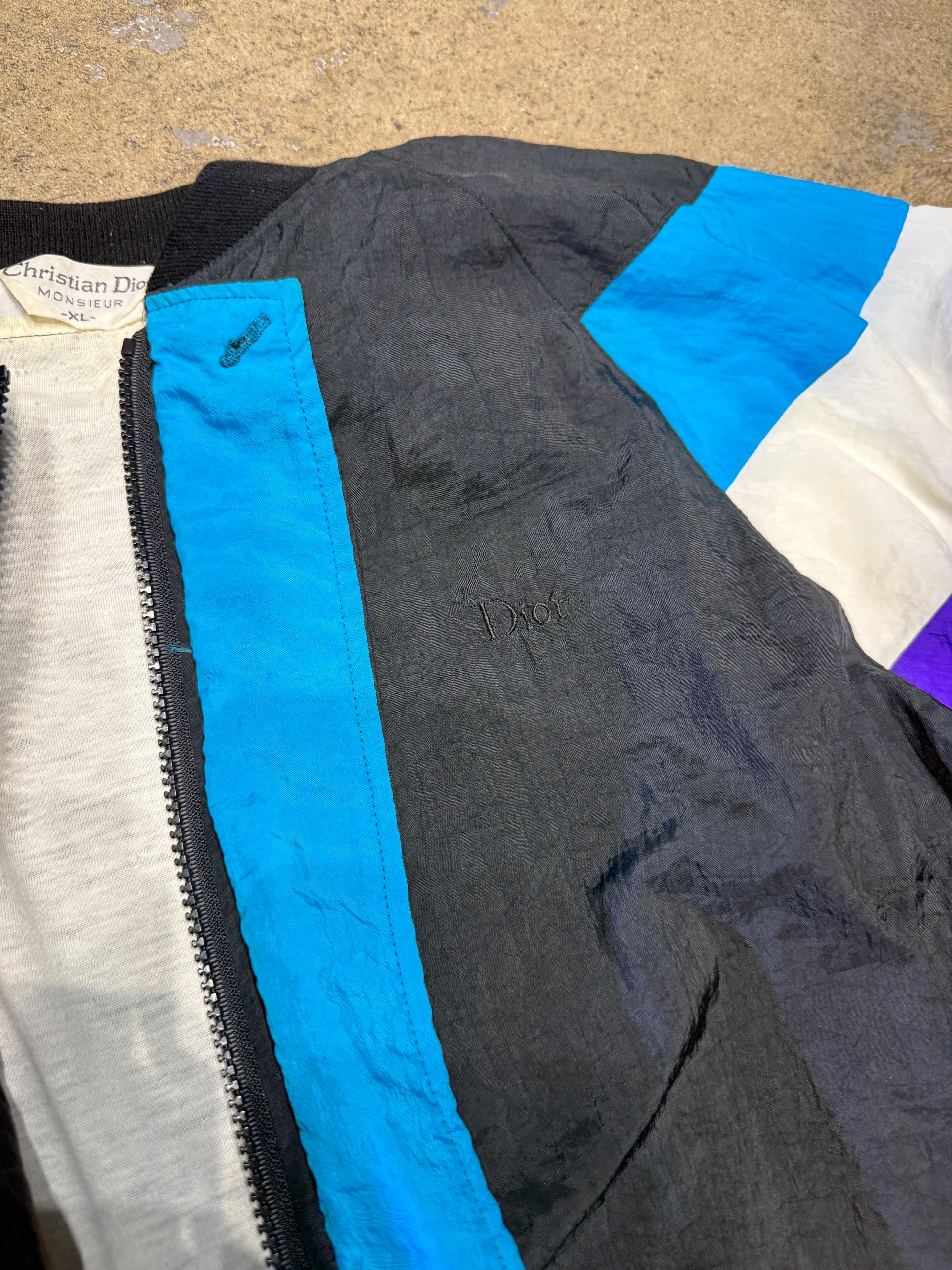 Christian Dior Vintage Windbreaker Track Jacket Black/Teal/Purple XL
