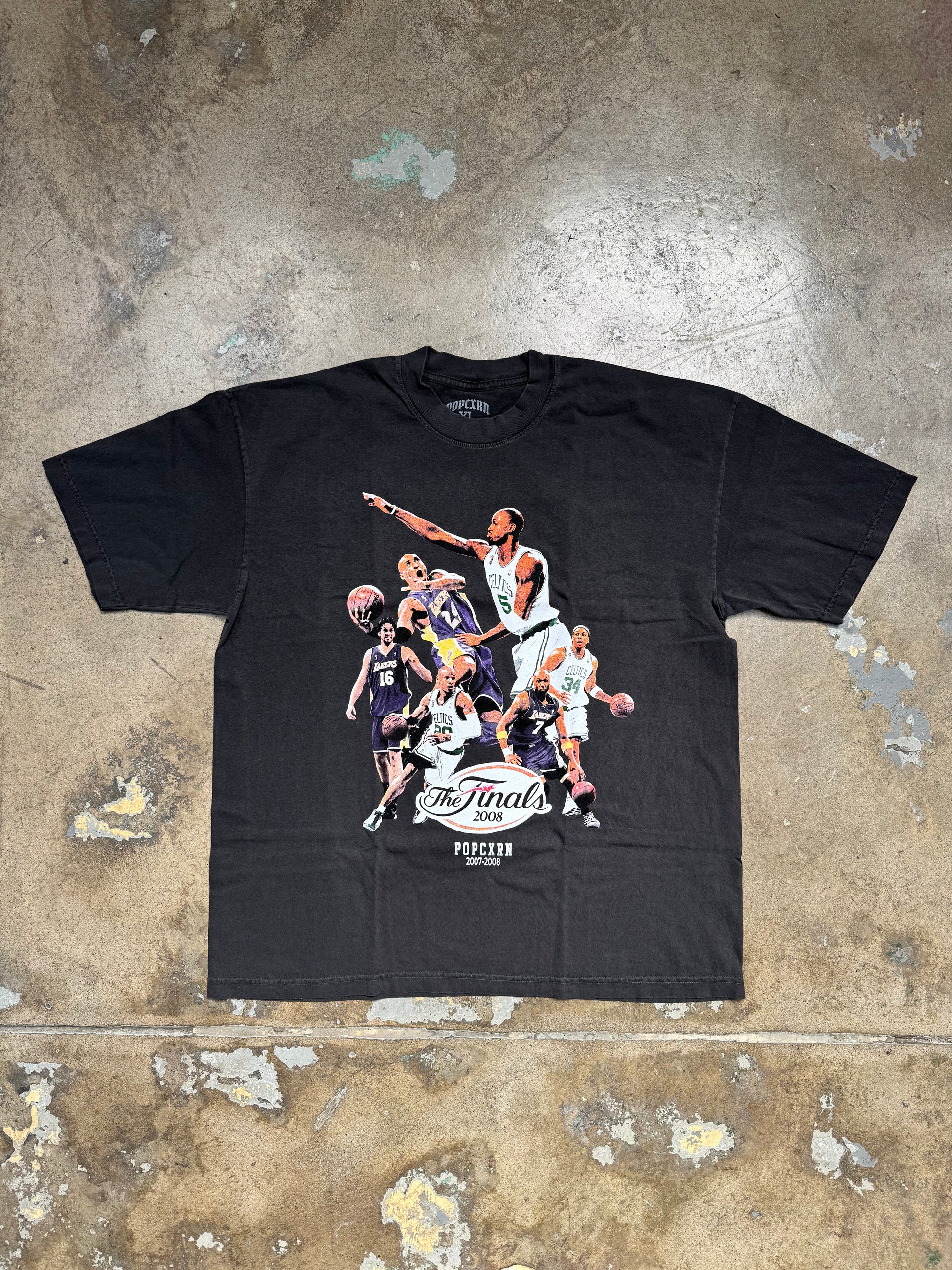 Popcxrn "The 2008 Finals Los Angeles Lakers VS Boston Celtics Stats" T shirt Washed Black